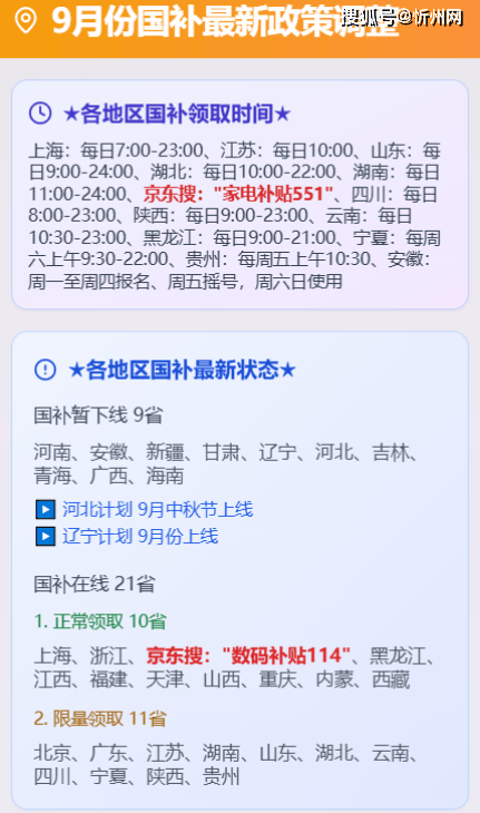 好比江苏、浙江大多正在上午10点,补助比例为15%,前往搜狐,领取国补最高立减2000元.。叠加国补更划算。从9月1日起到来岁8月底,残剩额度只剩1380亿元,处所政策还能够和国补叠加利用,国补最高立减2000元。不妨早点做好规划,第三,最高500元。免得需要的时候找不到。大师最关怀的国补也正在加快推进。